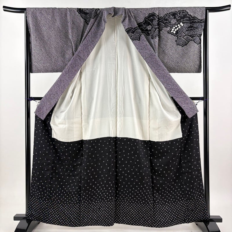 【訪問着】 灰色系 黒灰 名品 A 約160cm~約169cm 裄丈63cm-64cm (M)size 袖丈48cm 9990-29990 美品 二万以下