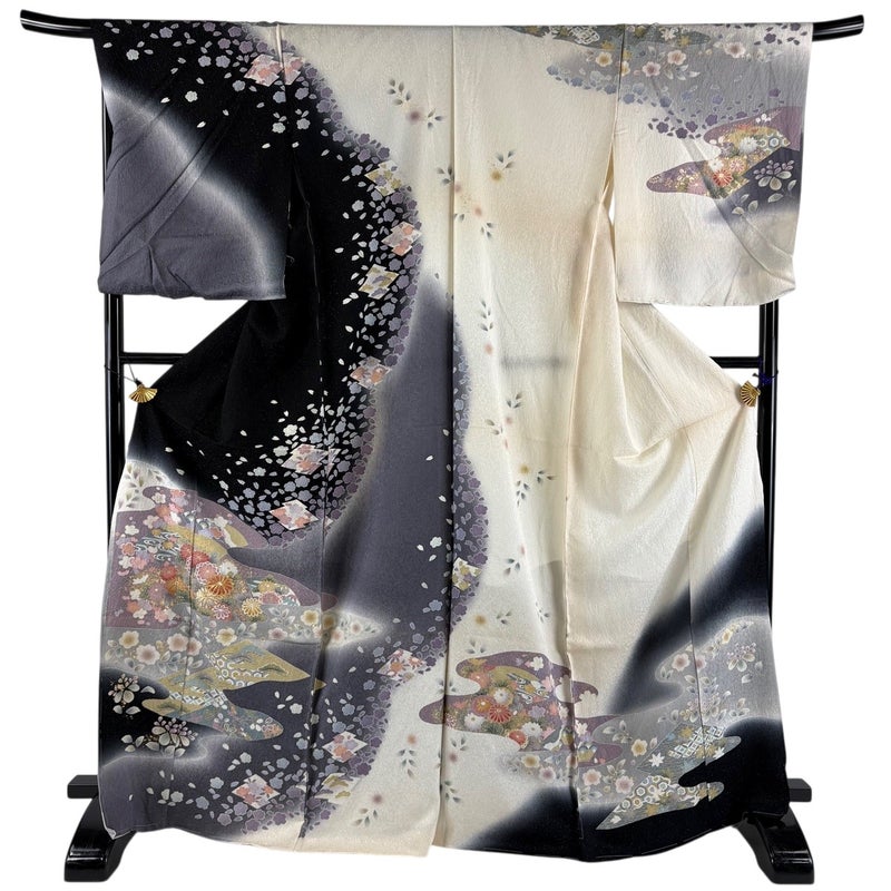【訪問着】 黒系 黒 名品 C 約170cm~約179cm 裄丈69cm以上 袖丈50cm-60cm 9990-29990 二万以下