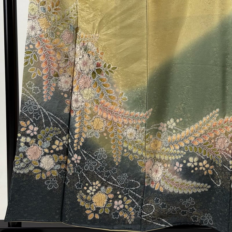 【訪問着】 緑系 抹茶色 名品 A 約150cm~約159cm 裄丈62cm以下 (S)size 袖丈50cm-60cm 9990-29990 美品 二万以下