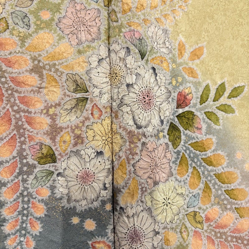 辻が花で有名な桐屋(翠山工房)謹製「徳永憲峯」の作品です。 気品たっぷりにお召し頂ける素敵な訪問着です。 上品な華やぎを求められるパーティーや、品格が求められるお席などにお使い頂けます。 ※身丈・裄丈の縫込みの長さは測っておりません。 両袖口中に薄汚れがございます。 また、上前から後身頃にかけて柄のズレがございます。 リユース品としては目立った染み傷なく、状態の良いお品でございます。 ※なお、厳しく商品の状態確認を行っておりますが、記載の汚れ以外にも見落とし箇所がある可能性がある旨ご了承いただけますと幸いです。 沢山の商品の中からご覧いただき誠にありがとうございます。