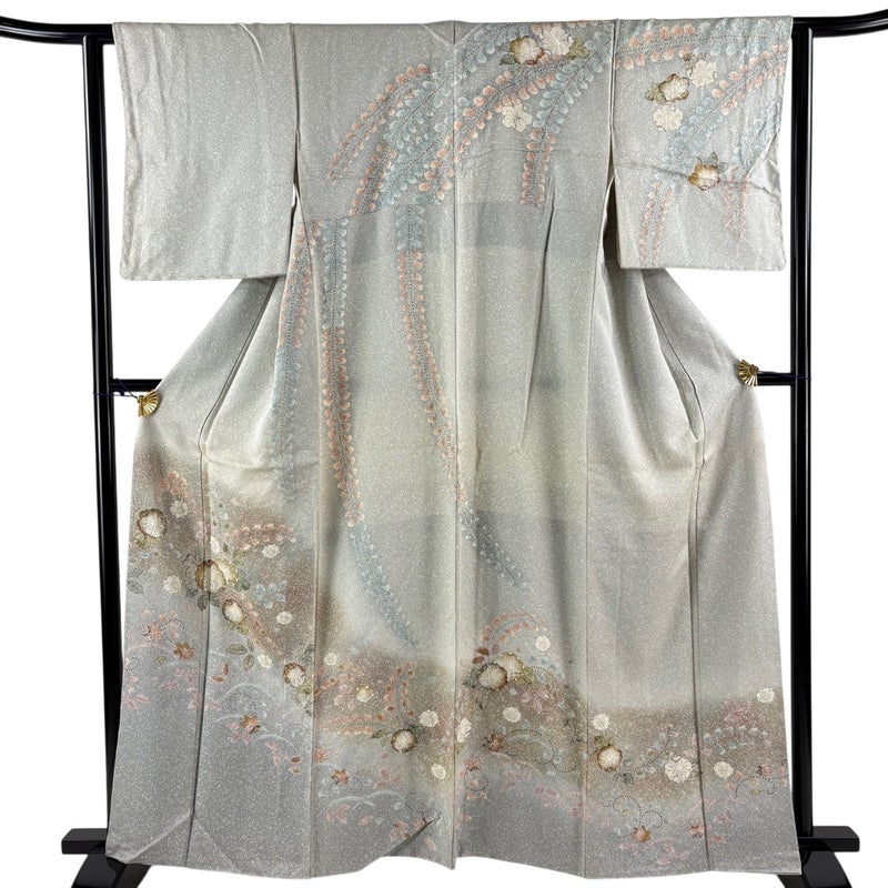 【訪問着】 灰色系 灰緑 名品 B 約160cm~約169cm 裄丈62cm以下 (S)size 袖丈48cm 9990-29990 二万以下