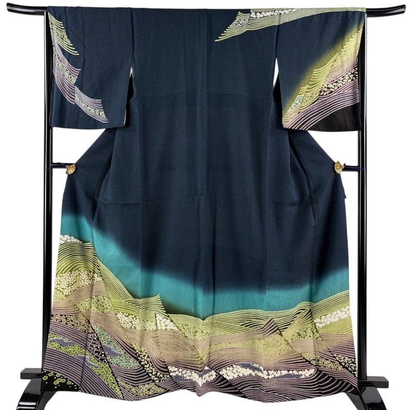 【着物ランク】逸品 【素材】正絹 【身丈】約163cm 【裄丈】約66cm 【袖丈】約52cm 【袖幅】約34cm 【前幅】約24cm 【後幅】約29cm 【サイズ】M 【着物仕立て】袷 【着用時期】10~5月 【状態ランク】ランクA 【着物着用シーン】披露宴、パーティー、お見合い、式典、茶会