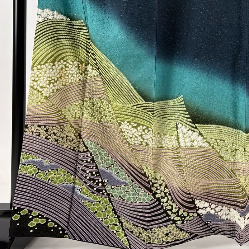【訪問着】 緑系 深緑 逸品 A 約160cm~約169cm 裄丈66cm (M)size 袖丈50cm-60cm 30000- 美品 五万以上
