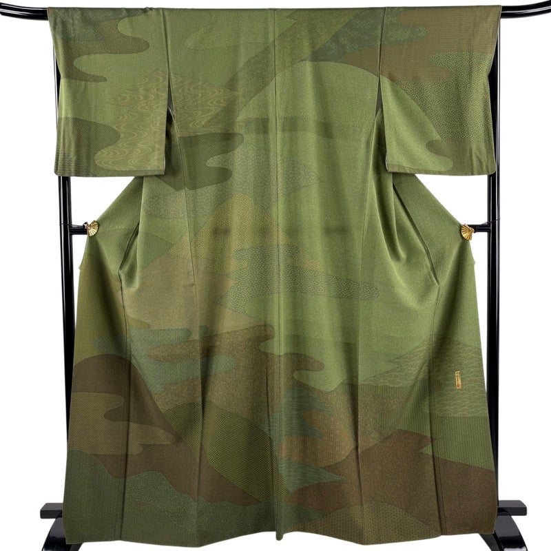 【訪問着】 緑系 よもぎ色 逸品 B 約160cm~約169cm 裄丈65cm (M)size 袖丈50cm-60cm 9990-29990 五万以下