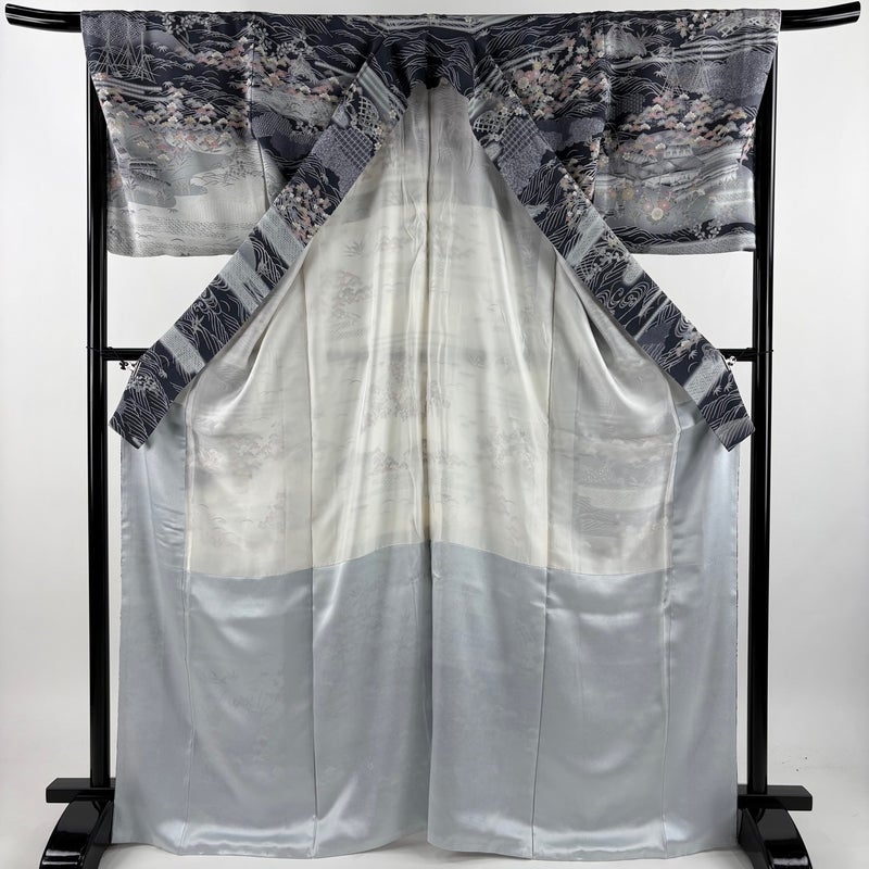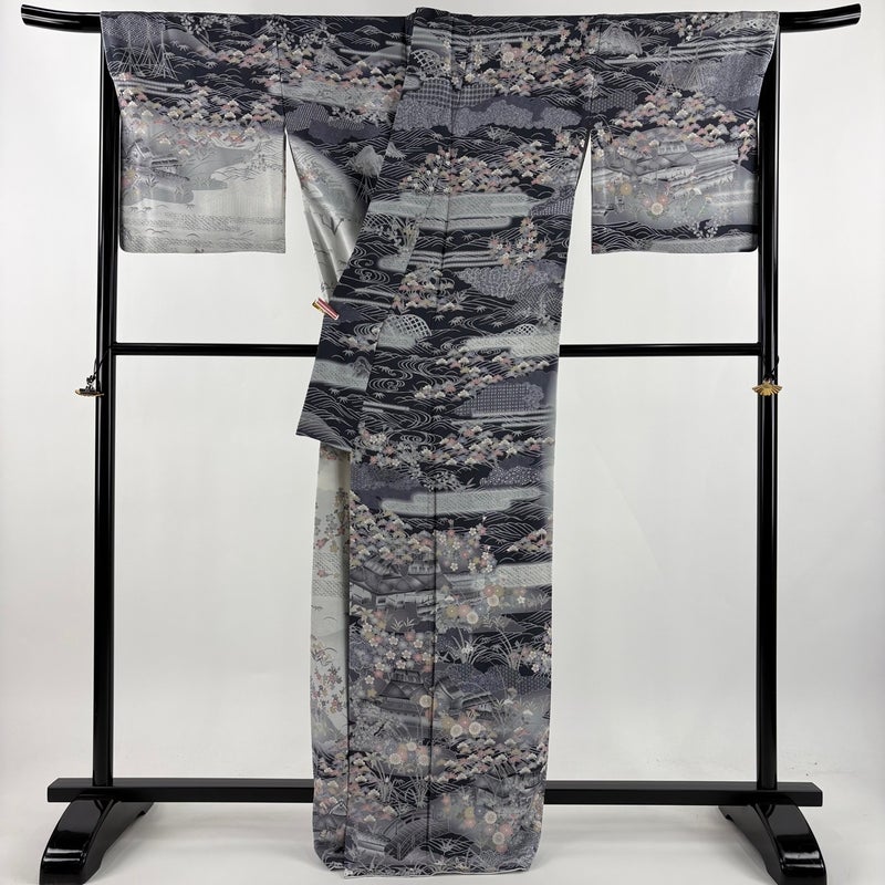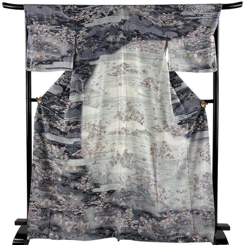 【訪問着】 灰色系 灰紫 逸品 A 約160cm~約169cm 裄丈67cm-68cm (M)size 袖丈48cm 30000- 美品 五万以下