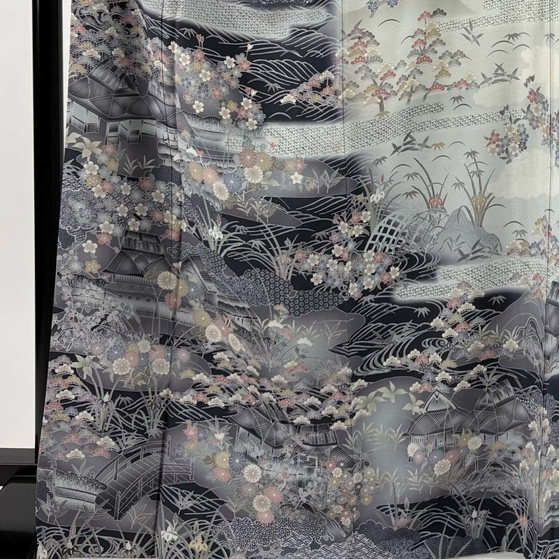 【着物ランク】逸品 【素材】正絹 【身丈】約167cm 【裄丈】約67cm 【袖丈】約48.5cm 【袖幅】約37.5cm 【前幅】約26cm 【後幅】約31cm 【サイズ】M 【着物仕立て】袷 【着用時期】10~5月 【状態ランク】ランクA 【着物着用シーン】披露宴、パーティー、お見合い、式典、茶会