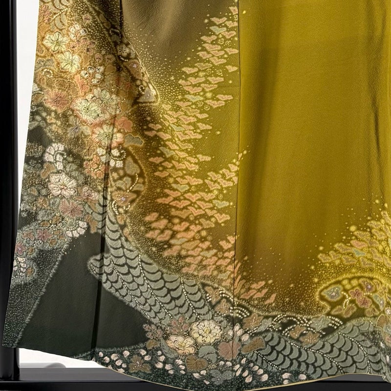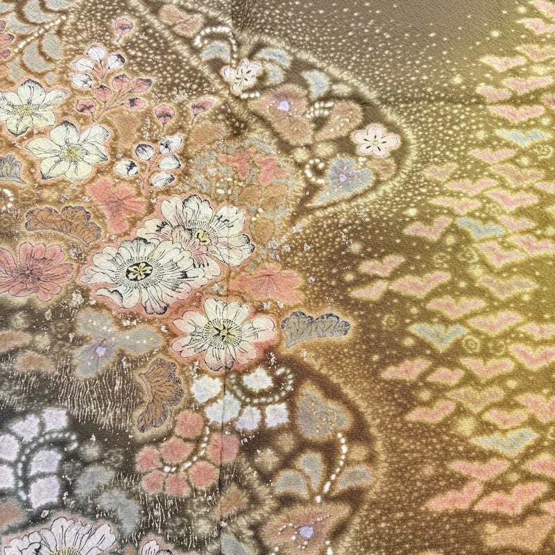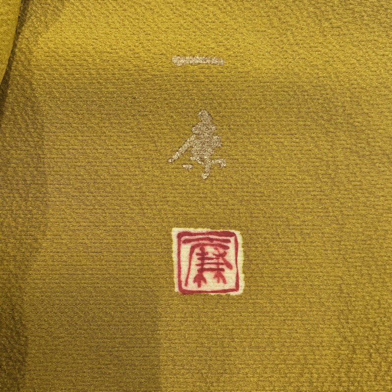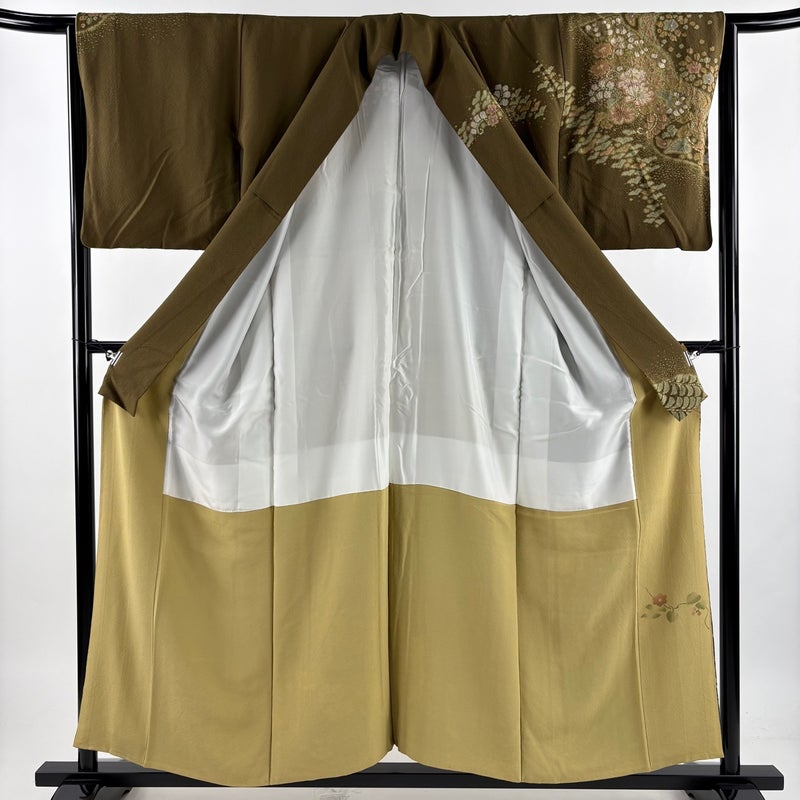 【訪問着】 茶系 茶緑色 逸品 A 約150cm~約159cm 裄丈63cm-64cm (M)size 袖丈47cm 30000- 美品 五万以下