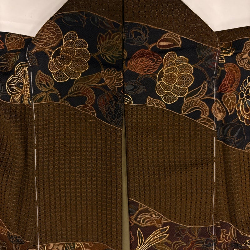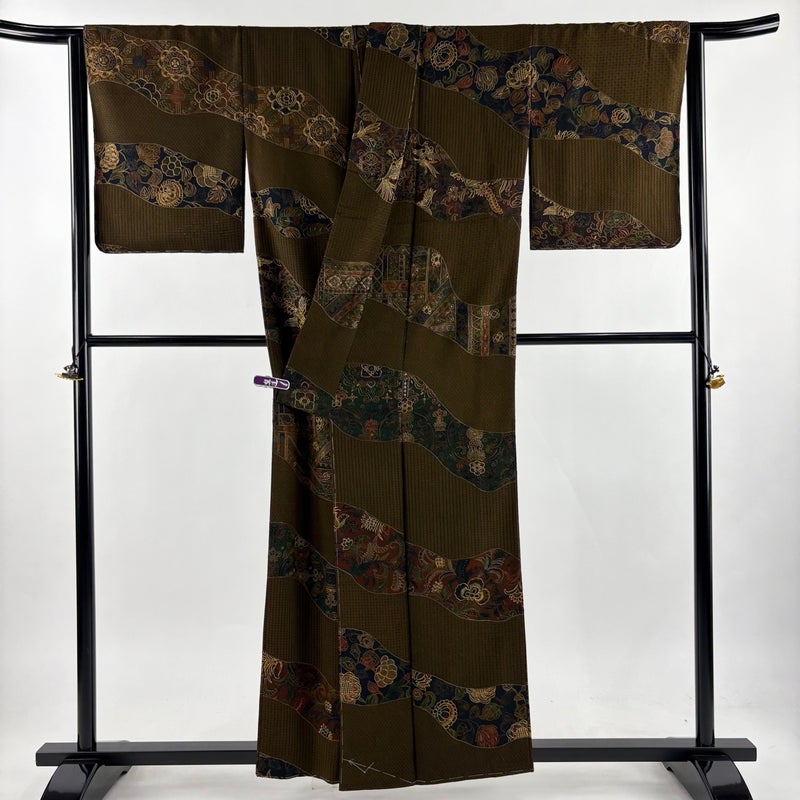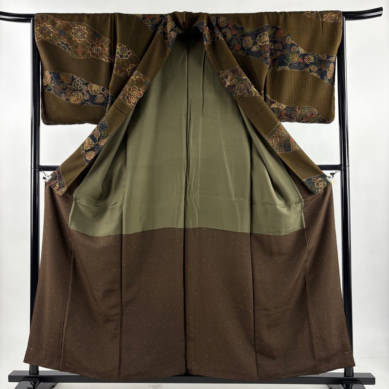 【訪問着】 茶系 焦茶色 逸品 A 約150cm~約159cm 裄丈63cm-64cm (M)size 袖丈48cm 30000- 美品 五万以上