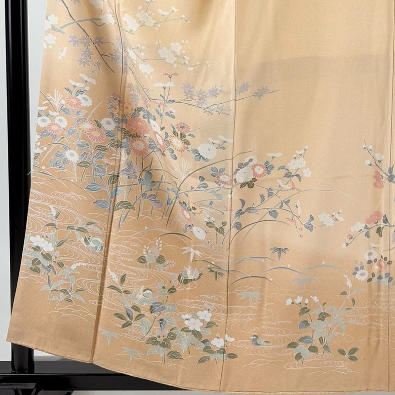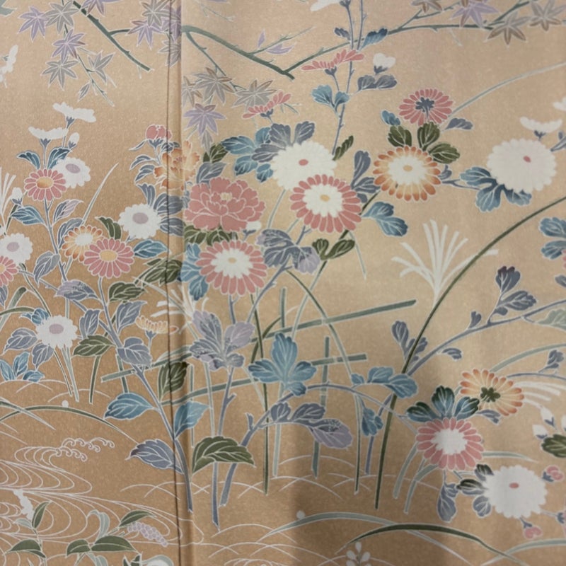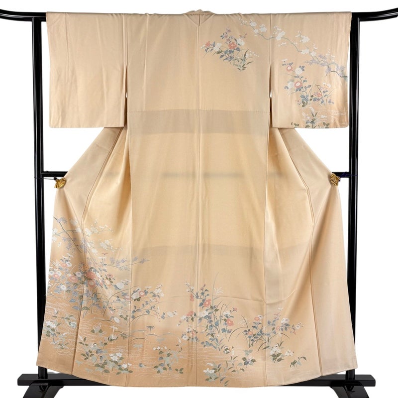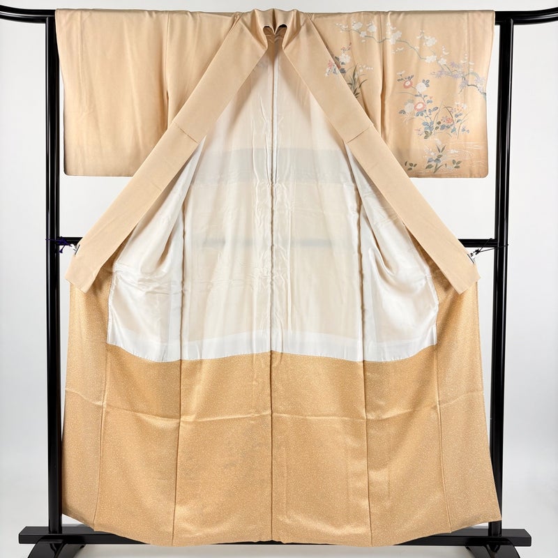 【着物ランク】秀品 【素材】正絹 【身丈】約157cm 【裄丈】約63cm 【袖丈】約48cm 【袖幅】約32cm 【前幅】約23cm 【後幅】約29cm 【サイズ】S 【着物仕立て】袷 【着用時期】10~5月 【状態ランク】ランクA 【着物着用シーン】披露宴、パーティー、お見合い、式典、茶会