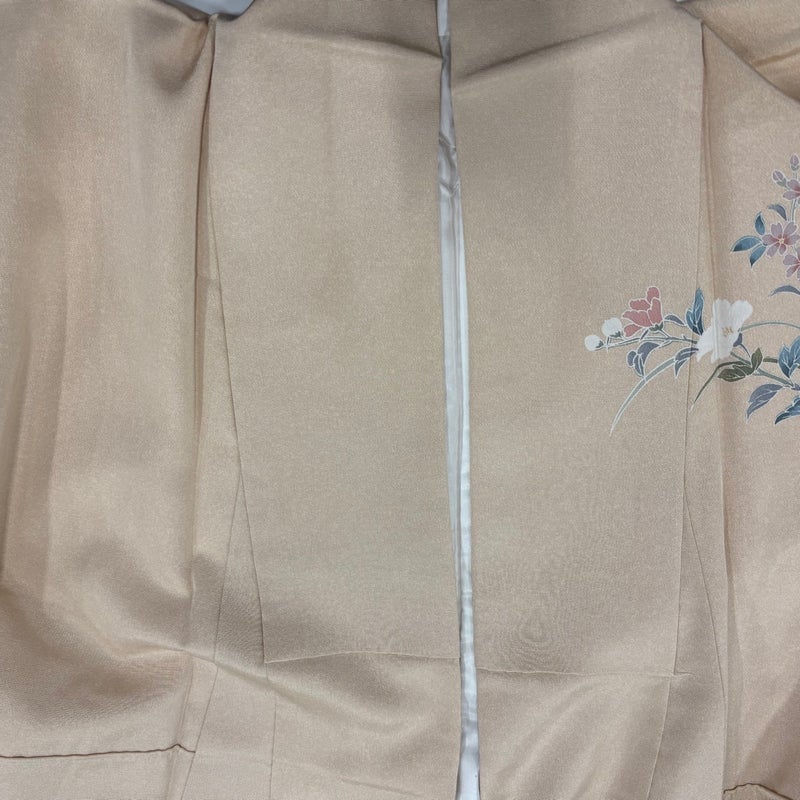 【訪問着】 赤系 薄オレンジ 秀品 A 約150cm~約159cm 裄丈63cm-64cm (S)size 袖丈48cm 9990-29990 美品 二万以下