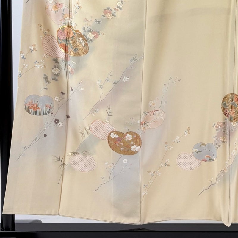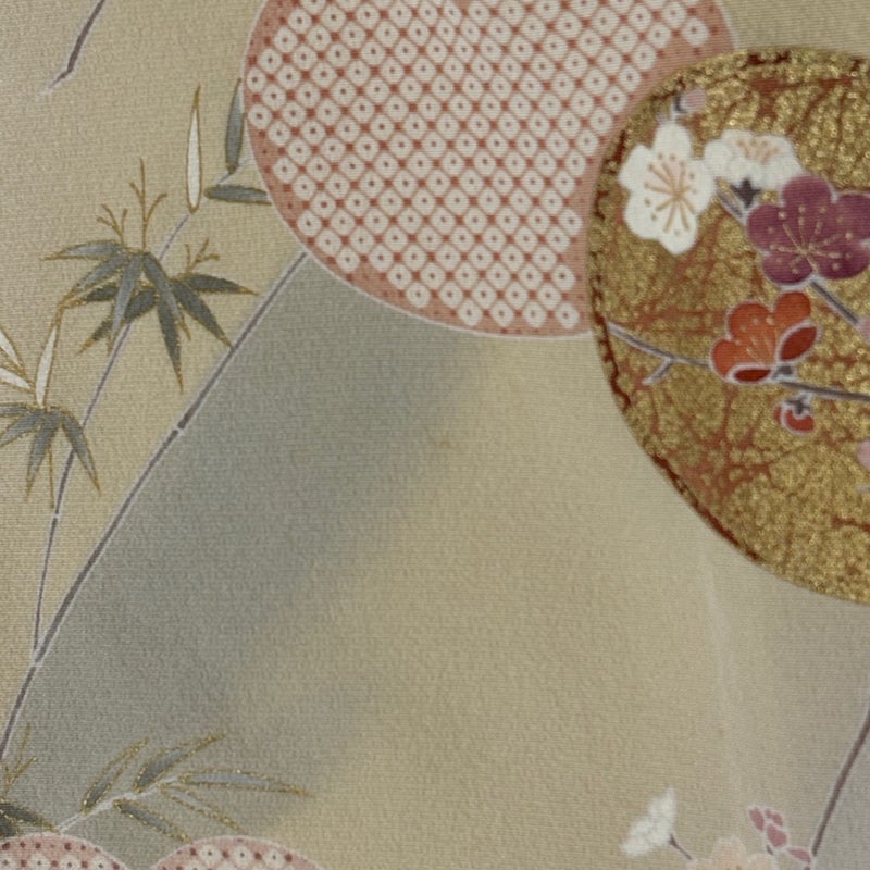 【訪問着】 白系 ベージュ 秀品 B 約150cm~約159cm 裄丈62cm以下 (S)size 袖丈50cm-60cm 7990-9980 二万以下