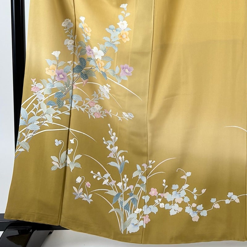 【訪問着】 黄色系 黄土色 秀品 A 約160cm~約169cm 裄丈66cm (M)size 袖丈49cm 9990-29990 美品 二万以下