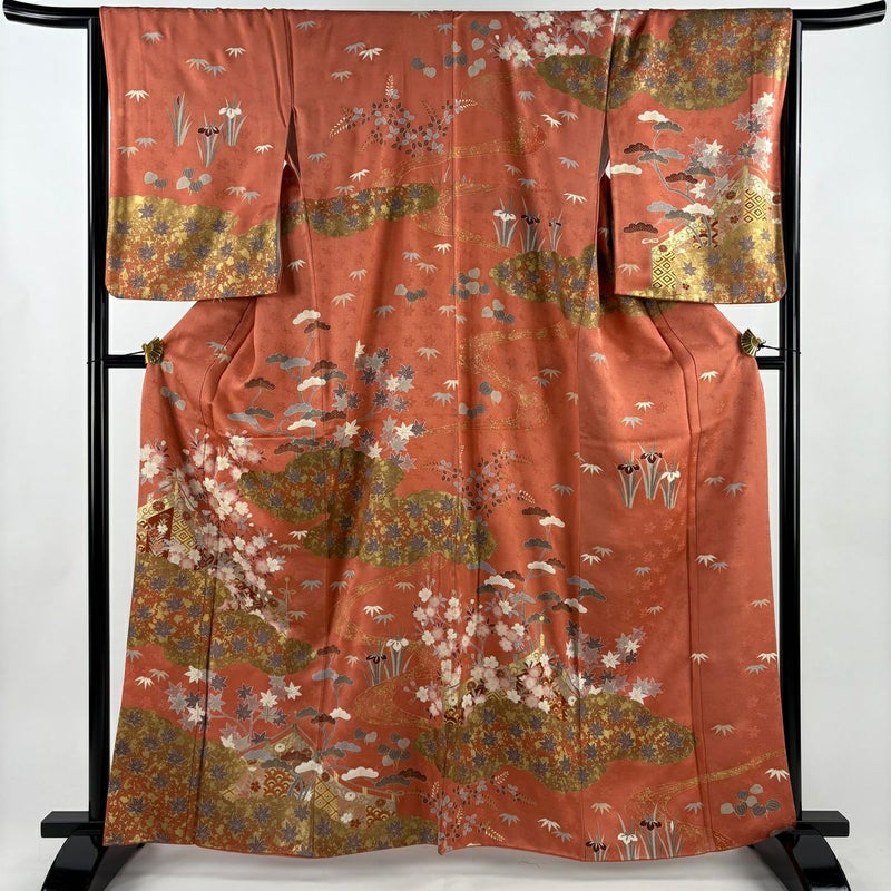 【訪問着】 赤系 サーモンピンク 名品 B 約160cm~約169cm 裄丈66cm (M)size 袖丈50cm-60cm 9990-29990 二万以下