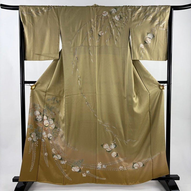 【訪問着】 黄色系 薄黄土色 名品 B 約160cm~約169cm 裄丈65cm (M)size 袖丈49cm 9990-29990 二万以下