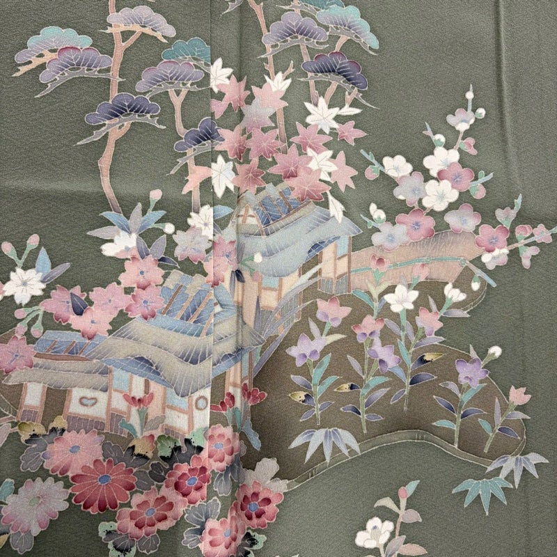 【訪問着】 灰色系 灰緑 秀品 B 約160cm~約169cm 裄丈63cm-64cm (M)size 袖丈50cm-60cm 7990-9980 二万以下