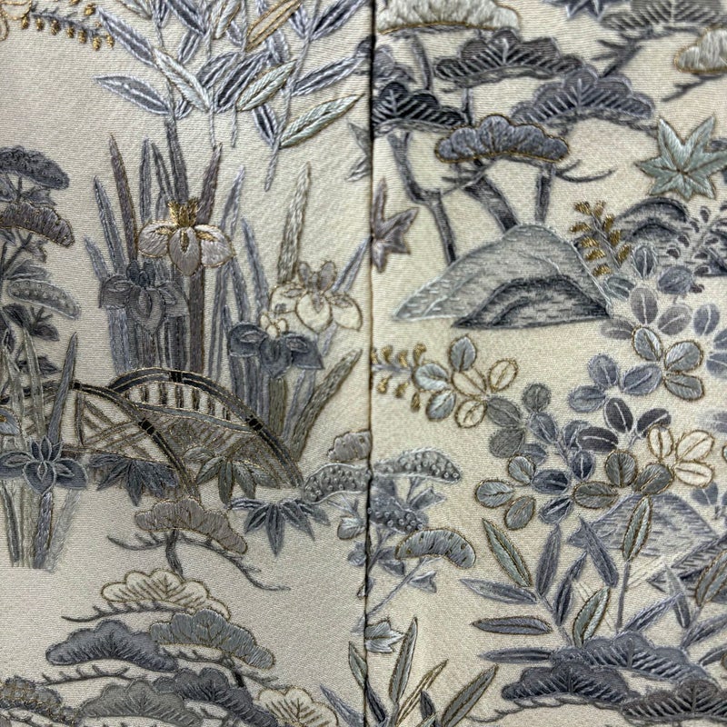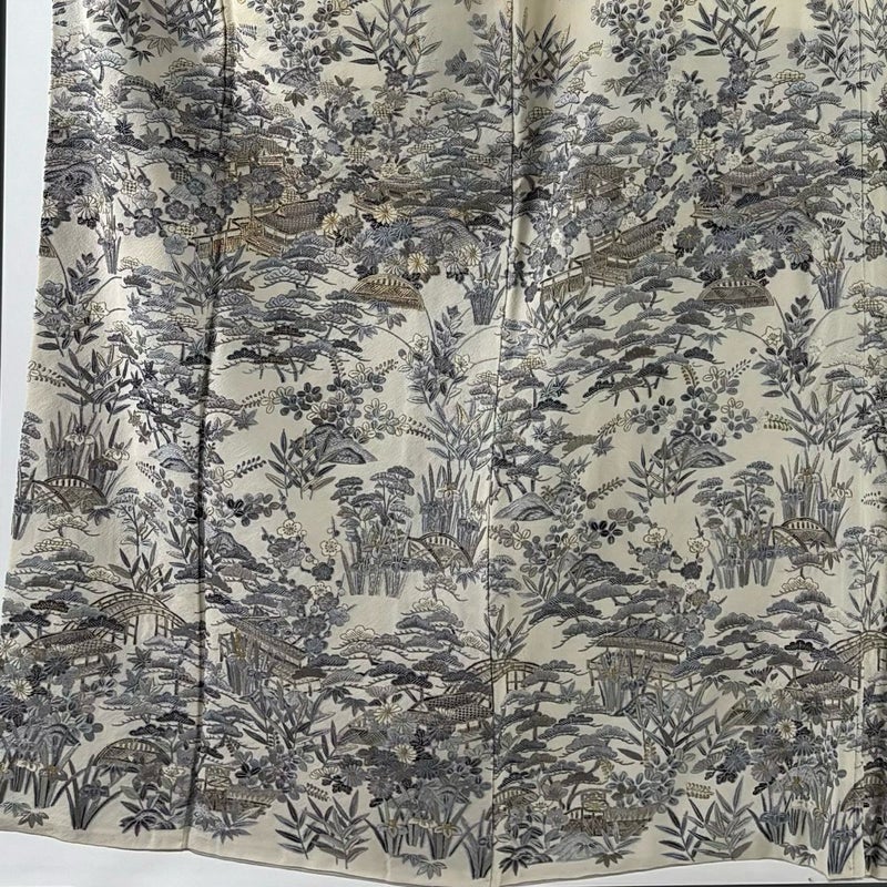 【着物ランク】逸品 【素材】正絹 【身丈】約154cm 【裄丈】約62.5cm 【袖丈】約48.5cm 【袖幅】約32.5cm 【前幅】約23.5cm 【後幅】約29cm 【サイズ】S 【着物仕立て】袷 【着用時期】10~5月 【状態ランク】ランクC 【着物着用シーン】披露宴、パーティー、お見合い、式典、茶会
