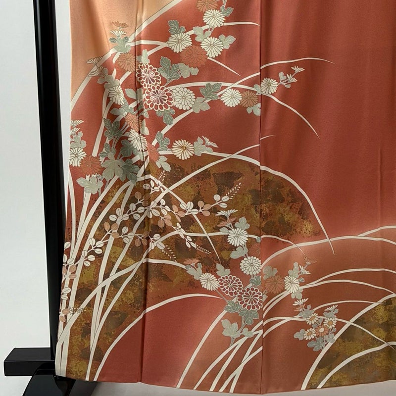 【訪問着】 赤系 オレンジ 秀品 C 約160cm~約169cm 裄丈66cm (M)size 袖丈50cm-60cm 7990-9980 二万以下