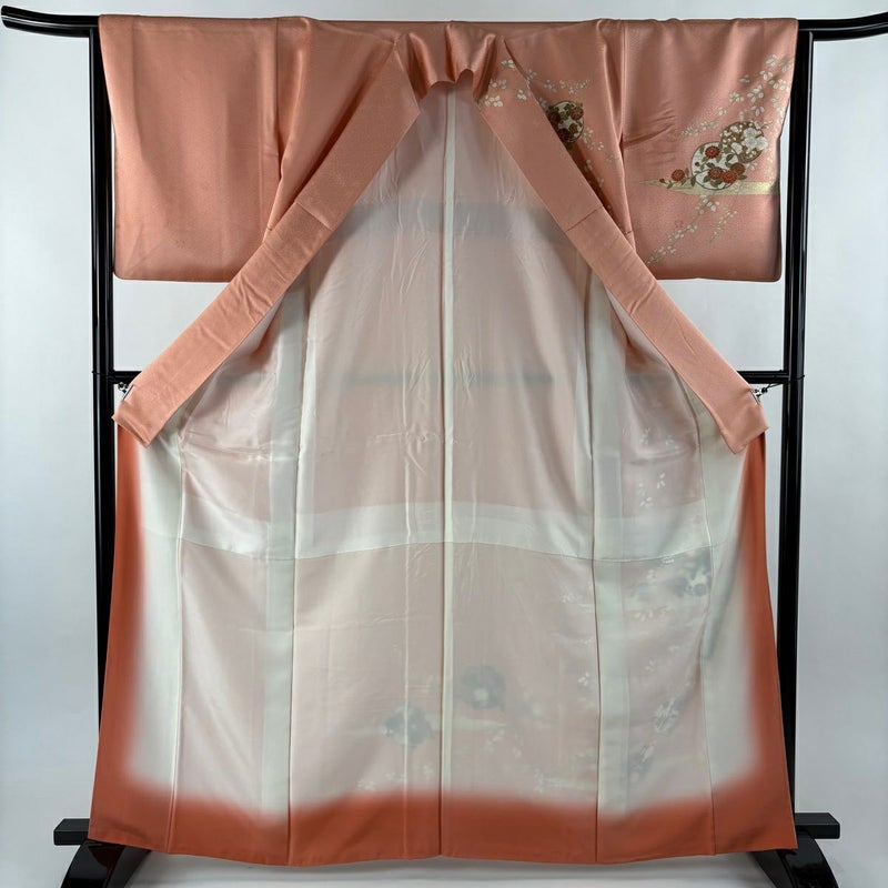【訪問着】 赤系 サーモンピンク 名品 B 約160cm~約169cm 裄丈63cm-64cm (M)size 袖丈49cm 9990-29990 二万以下