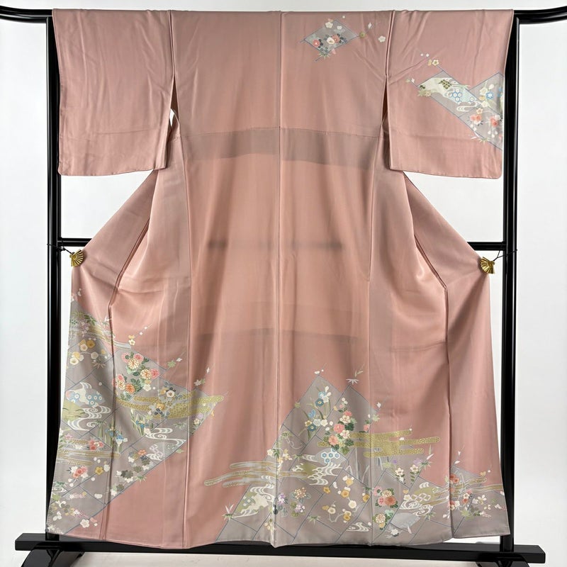 【訪問着】 赤系 薄ピンク 秀品 B 約150cm~約159cm 裄丈65cm (M)size 袖丈48cm 7990-9980 二万以下