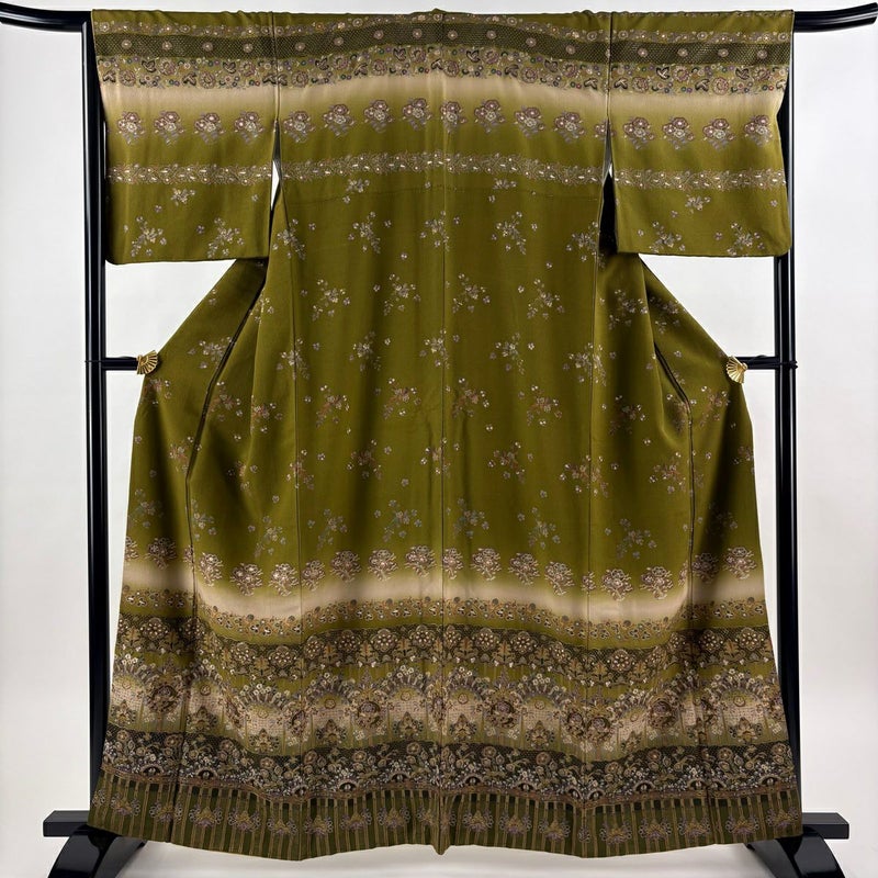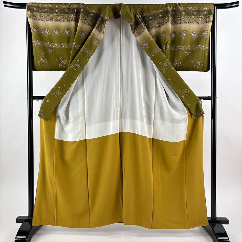 【訪問着】 茶系 茶緑色 逸品 A 約160cm~約169cm 裄丈67cm-68cm (M)size 袖丈49cm 30000- 美品 五万以上