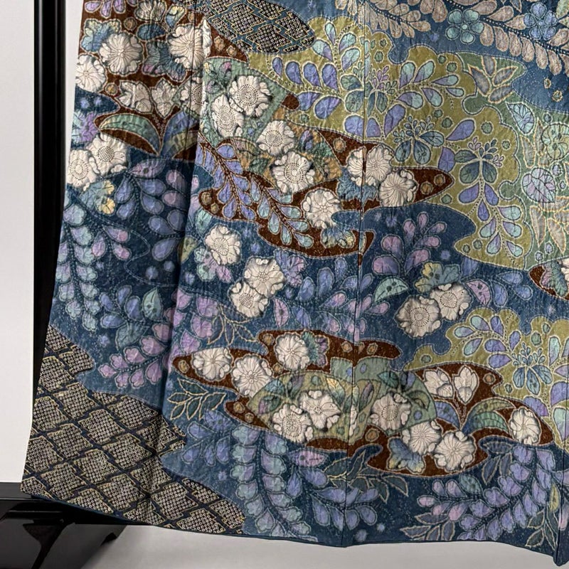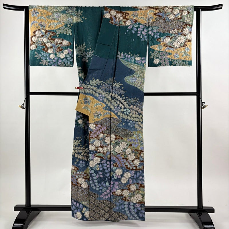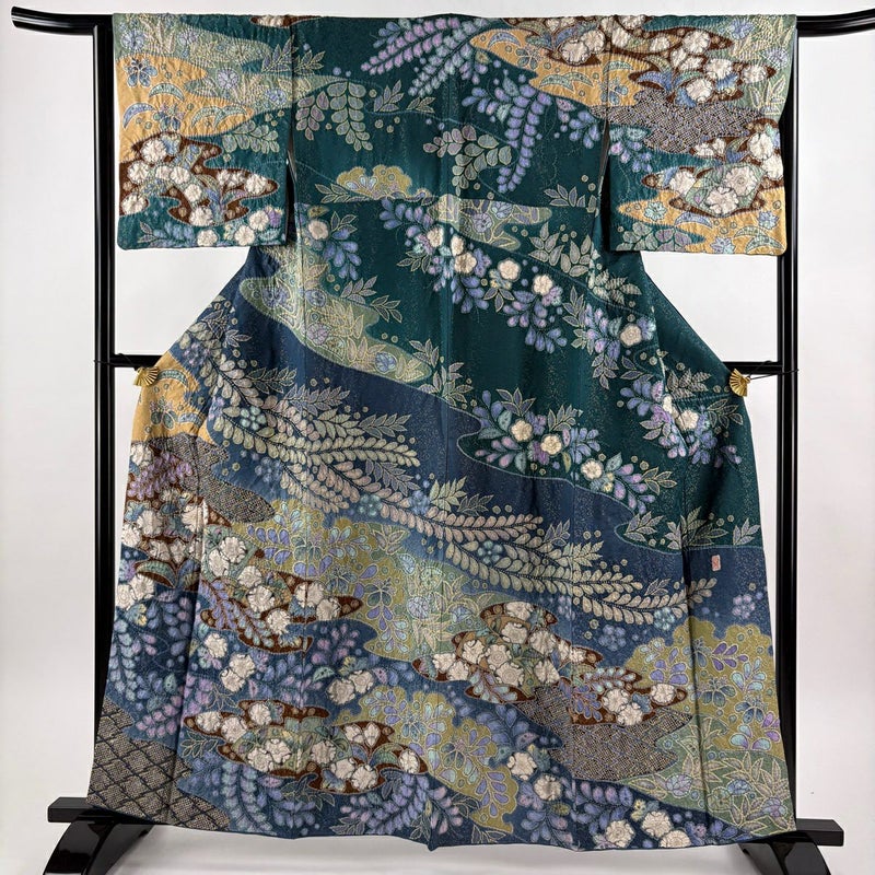 【着物ランク】逸品 【素材】正絹 【身丈】約161cm 【裄丈】約65cm 【袖丈】約47.5cm 【袖幅】約34.5cm 【前幅】約26.5cm 【後幅】約30.5cm 【サイズ】M 【着物仕立て】袷 【着用時期】10~5月 【状態ランク】ランクA 【作家名】翠山工房 【着物着用シーン】披露宴、パーティー、お見合い、式典、茶会