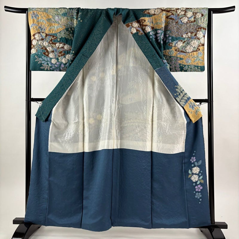 【訪問着】 灰色系 青灰色 逸品 A 約160cm~約169cm 裄丈65cm (M)size 袖丈47cm 30000- 美品 五万以下