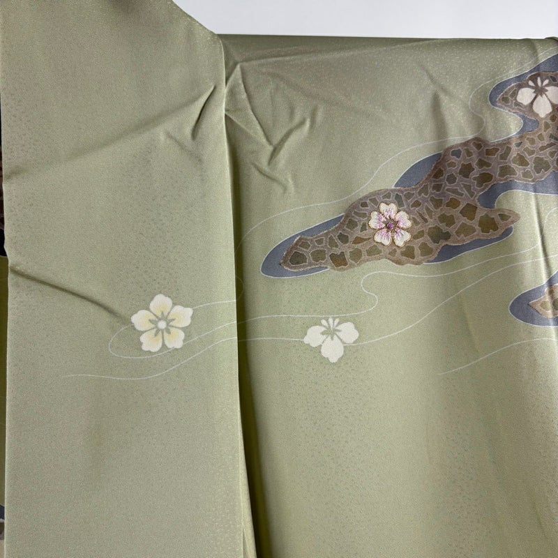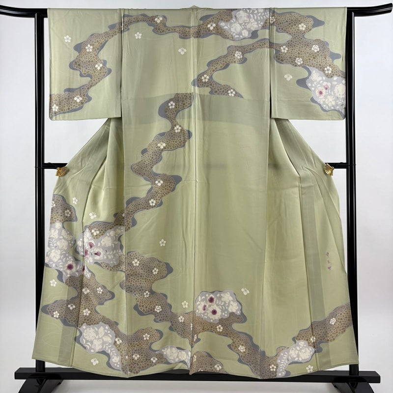 【訪問着】 緑系 抹茶色 逸品 B 約150cm~約159cm 裄丈63cm-64cm (S)size 袖丈49cm 30000- 五万以下