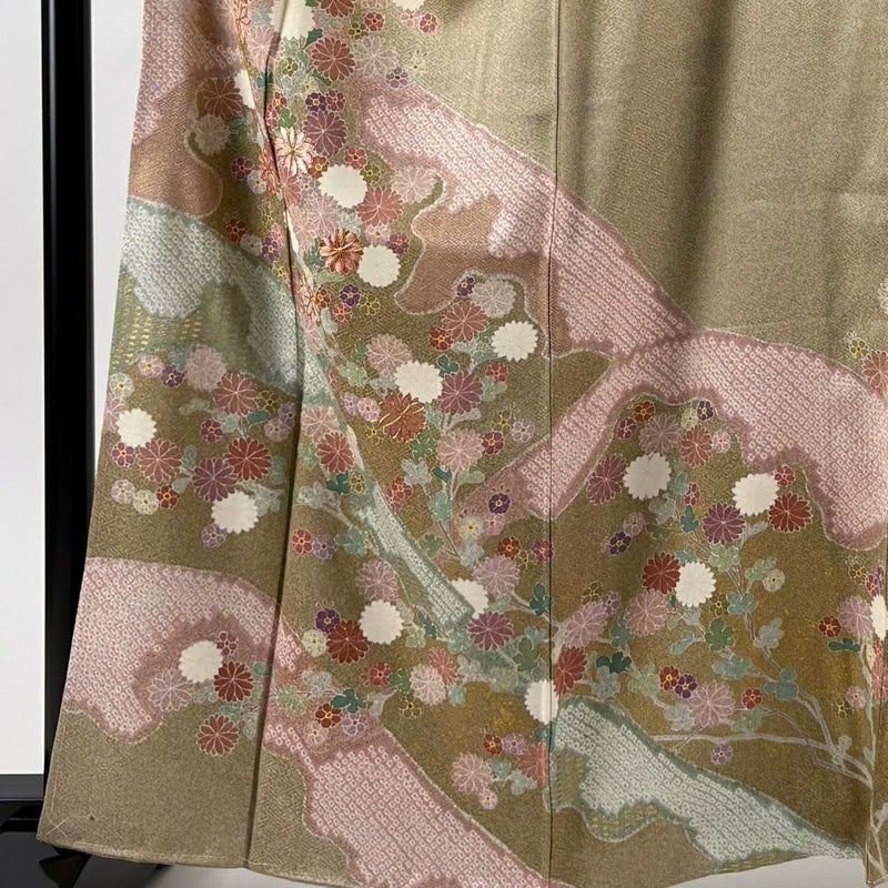 京友禅作家である松井青々の作品でございます。 気品たっぷりにお召し頂ける素敵な訪問着です。 上品な華やぎを求められるパーティーや、品格が求められるお席などにお使い頂けます。 身丈を+1.5cm程、現在の長さから伸ばせます。 裄丈はこれ以上伸ばすことができません。 表地所々に金彩の変色がございます。 胴裏に点シミがございます。 リユース品としては良い状態で、まだまだご活用頂けると思われます。 ※なお、厳しく商品の状態確認を行っておりますが、記載の汚れ以外にも見落とし箇所がある可能性がある旨ご了承いただけますと幸いです。 沢山の商品の中からご覧いただき誠にありがとうございます。 【PR2】