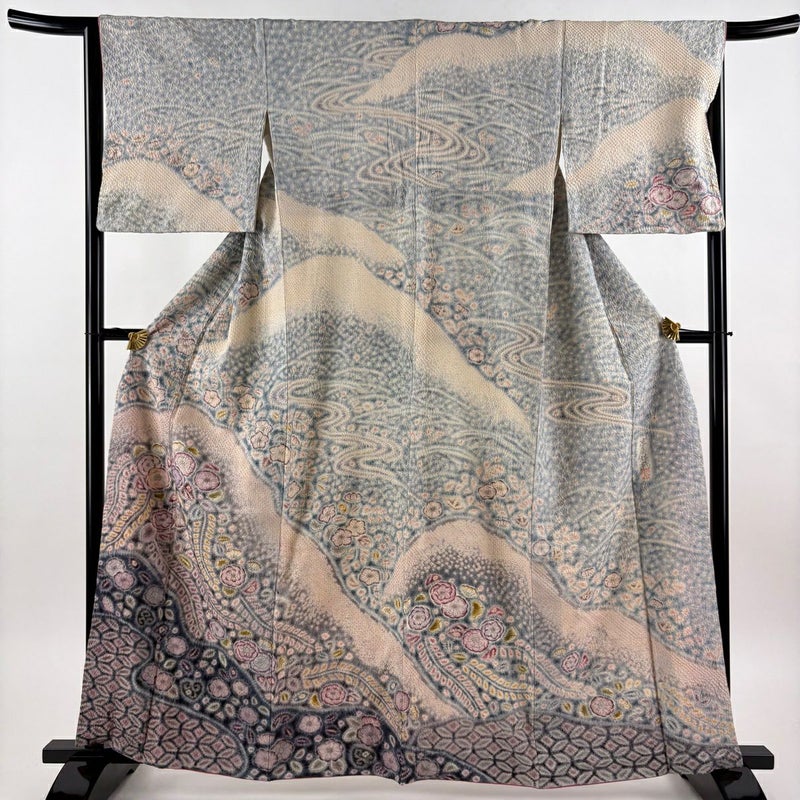 【訪問着】 灰色系 青灰色 逸品 B 約160cm~約169cm 裄丈63cm-64cm (M)size 袖丈47cm 30000- 五万以上