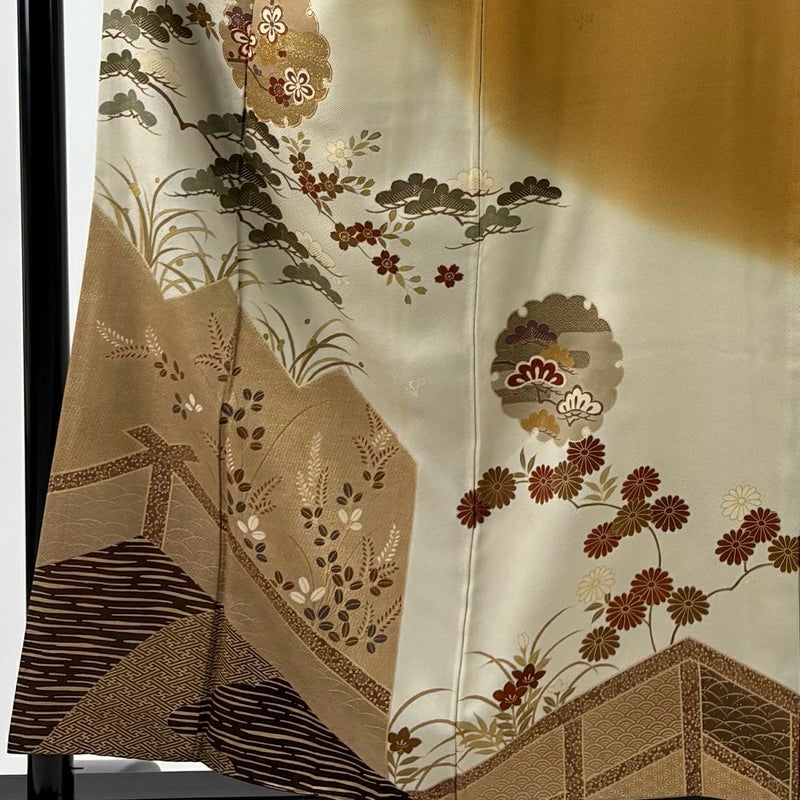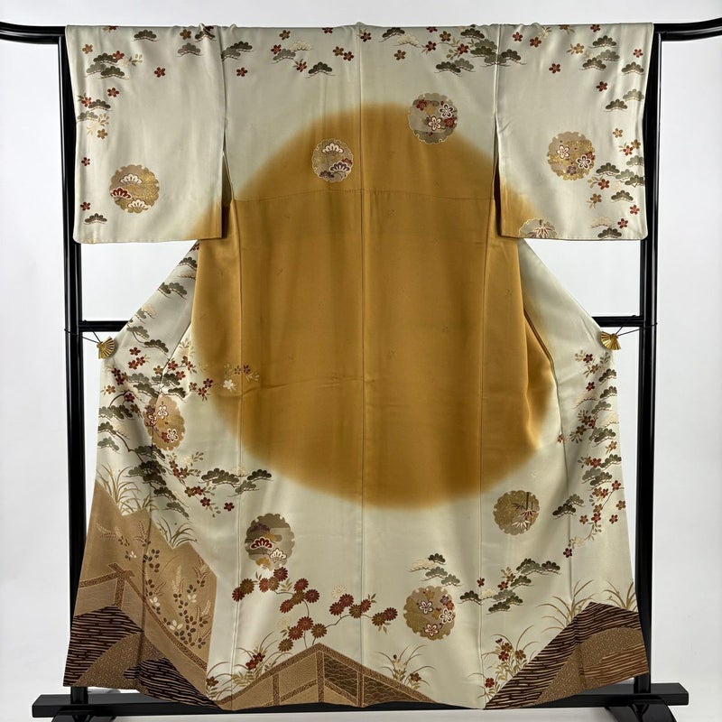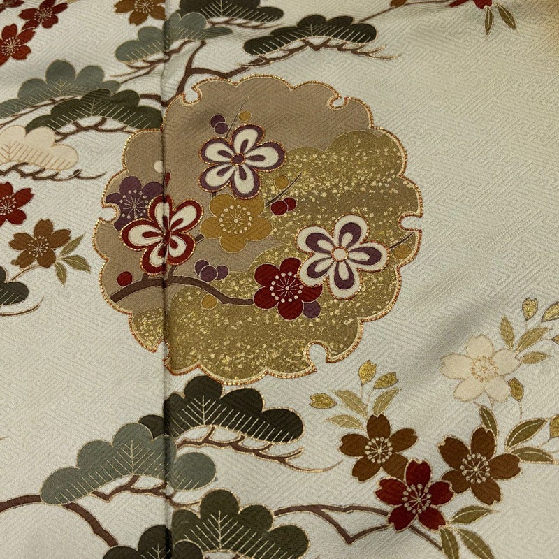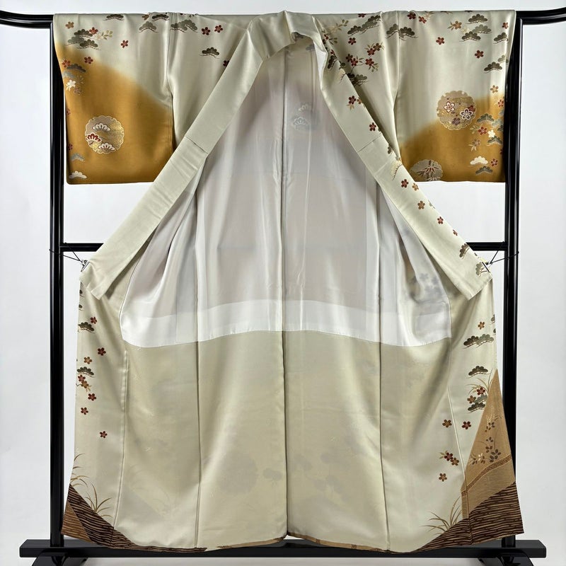 【着物ランク】秀品 【素材】正絹 【身丈】約158cm 【裄丈】約66cm 【袖丈】約49cm 【袖幅】約34cm 【前幅】約24cm 【後幅】約30.5cm 【サイズ】M 【着物仕立て】袷 【着用時期】10~5月 【状態ランク】ランクB 【着物着用シーン】披露宴、パーティー、お見合い、式典、茶会