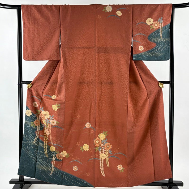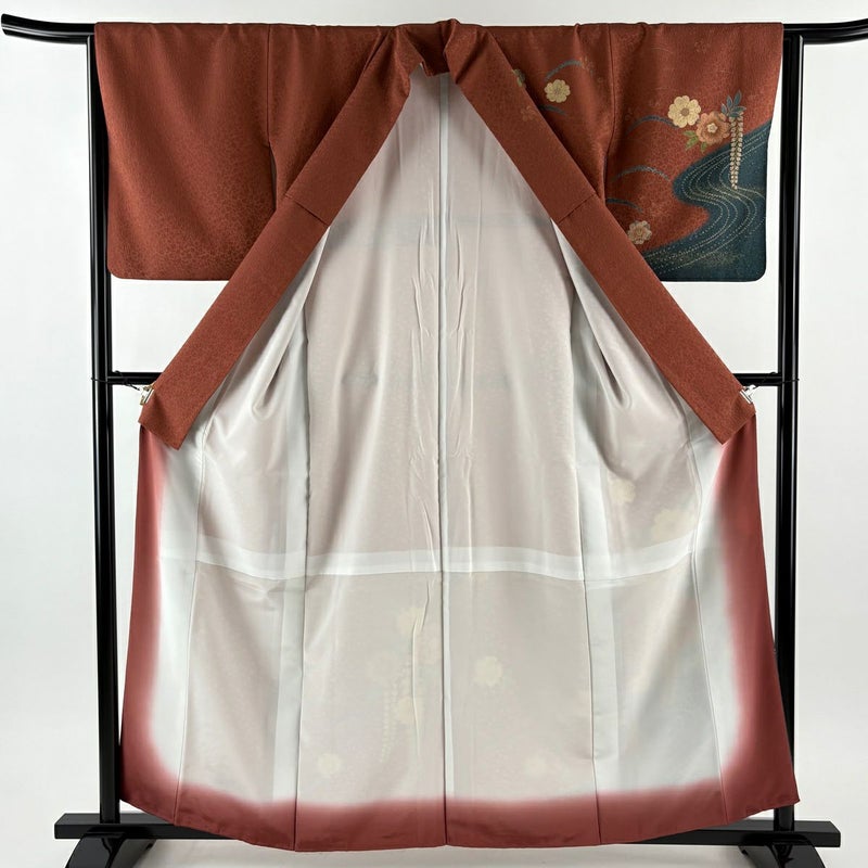 【訪問着】 赤系 赤茶 優品 A 約150cm~約159cm 裄丈63cm-64cm (M)size 袖丈48cm 4000-7980 美品 二万以下
