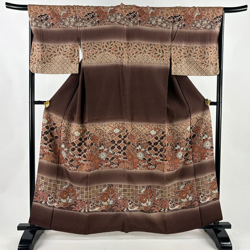 【訪問着】 茶系 茶紫 秀品 B 約160cm~約169cm 裄丈67cm-68cm (M)size 袖丈48cm 7990-9980 二万以下