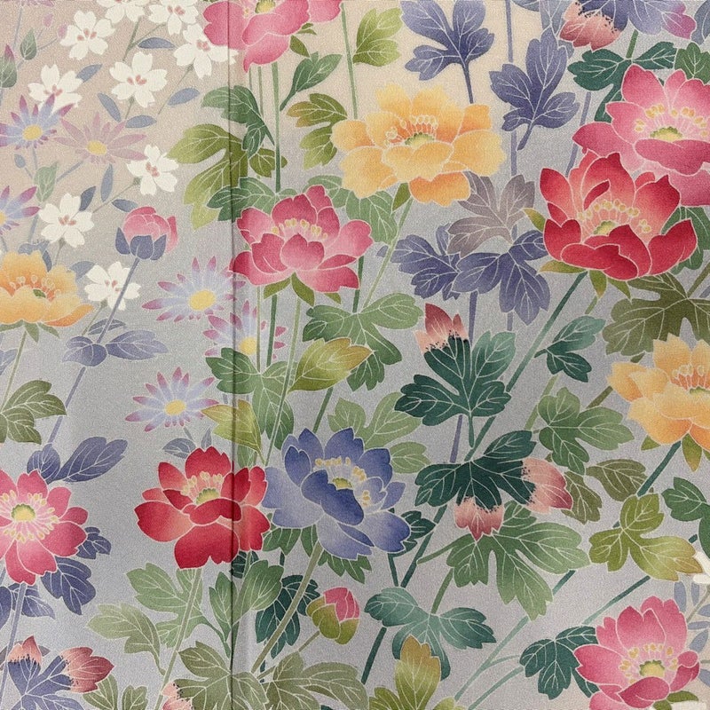 【着物ランク】名品 【素材】正絹 【身丈】約159.5cm 【裄丈】約65.5cm 【袖丈】約56cm 【袖幅】約33.5cm 【前幅】約24cm 【後幅】約30.5cm 【サイズ】M 【着物仕立て】袷 【着用時期】10~5月 【状態ランク】ランクA 【着物着用シーン】披露宴、パーティー、お見合い、式典、茶会