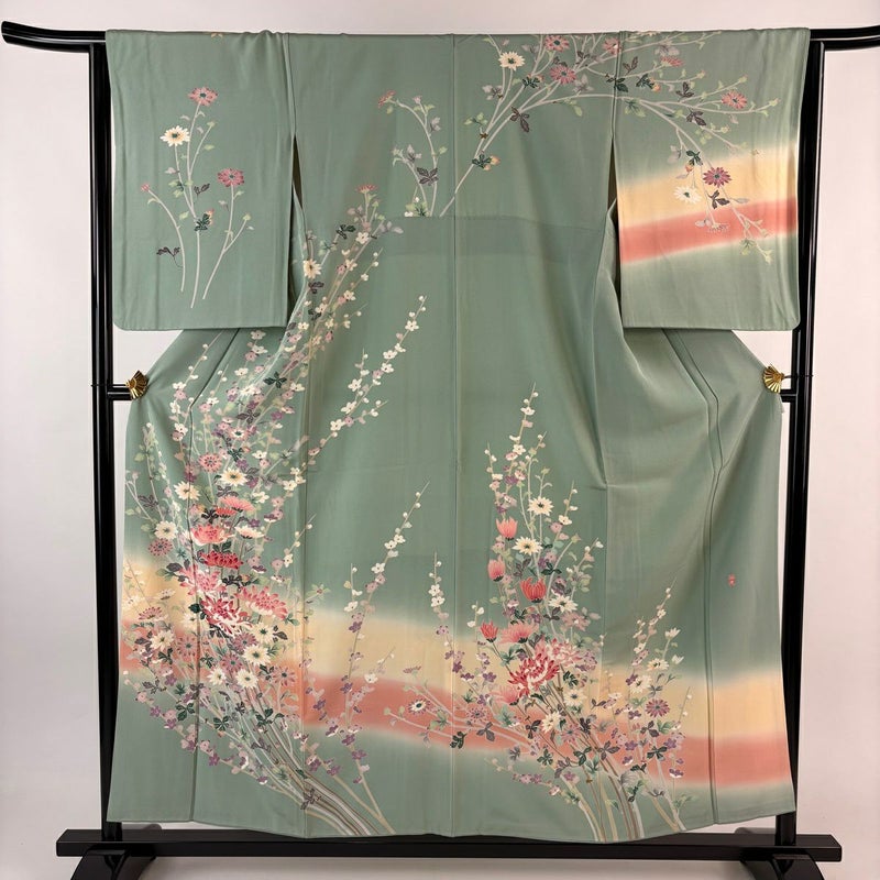 【訪問着】 緑系 薄緑 名品 B 約150cm~約159cm 裄丈63cm-64cm (M)size 袖丈50cm-60cm 9990-29990 二万以下
