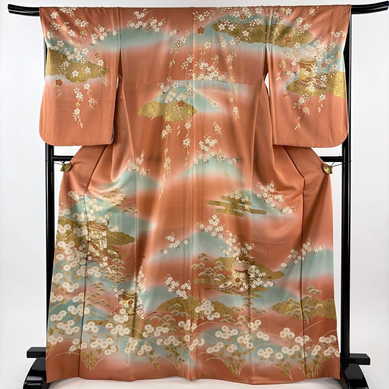 【訪問着】 赤系 サーモンピンク 秀品 B 約160cm~約169cm 裄丈67cm-68cm (M)size 袖丈61cm~90cm 7990-9980 二万以下