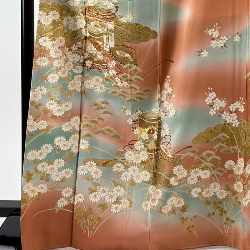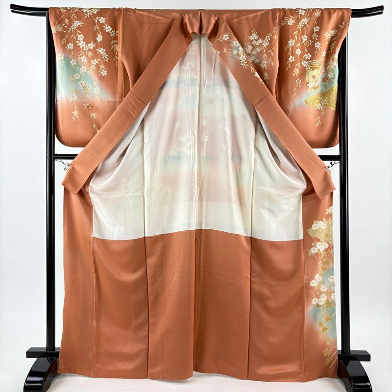 【着物ランク】秀品 【素材】正絹 【身丈】約167.5cm 【裄丈】約67cm 【袖丈】約64cm 【袖幅】約35cm 【前幅】約24.5cm 【後幅】約29.5cm 【サイズ】M 【着物仕立て】袷 【着用時期】10~5月 【状態ランク】ランクB 【着物着用シーン】披露宴、パーティー、お見合い、式典、茶会