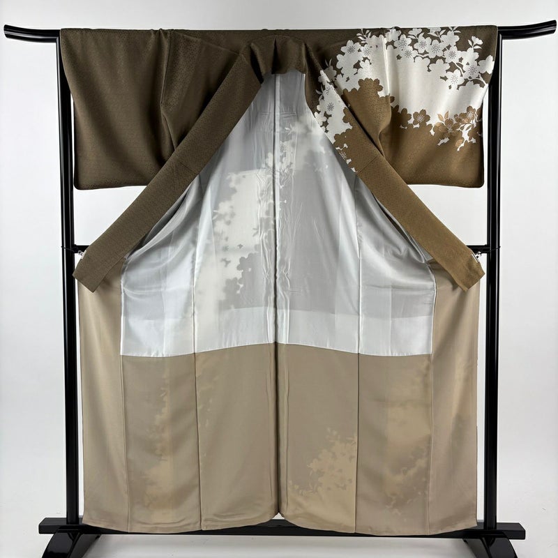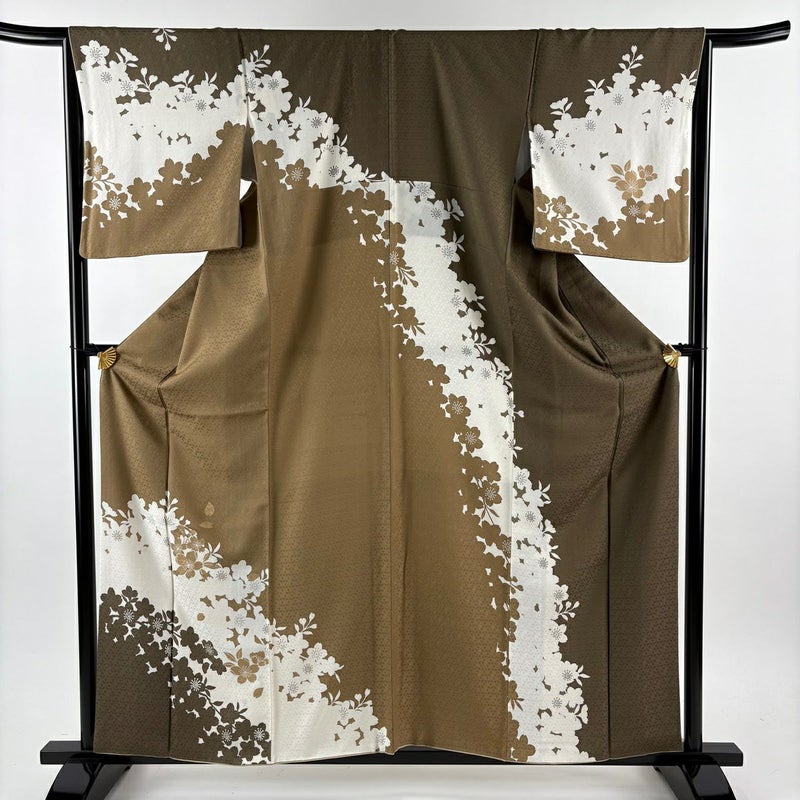 【訪問着】 茶系 薄茶色 秀品 A 約150cm~約159cm 裄丈66cm (M)size 袖丈49cm 9990-29990 美品 五万以下