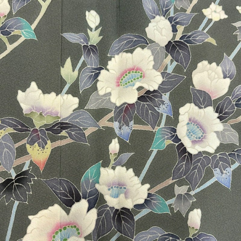 【着物ランク】名品 【素材】正絹 【身丈】約157cm 【裄丈】約65cm 【袖丈】約48.5cm 【袖幅】約33cm 【前幅】約27.5cm 【後幅】約32cm 【サイズ】M 【着物仕立て】袷 【着用時期】10~5月 【状態ランク】ランクC 【着物着用シーン】披露宴、パーティー、お見合い、式典、茶会
