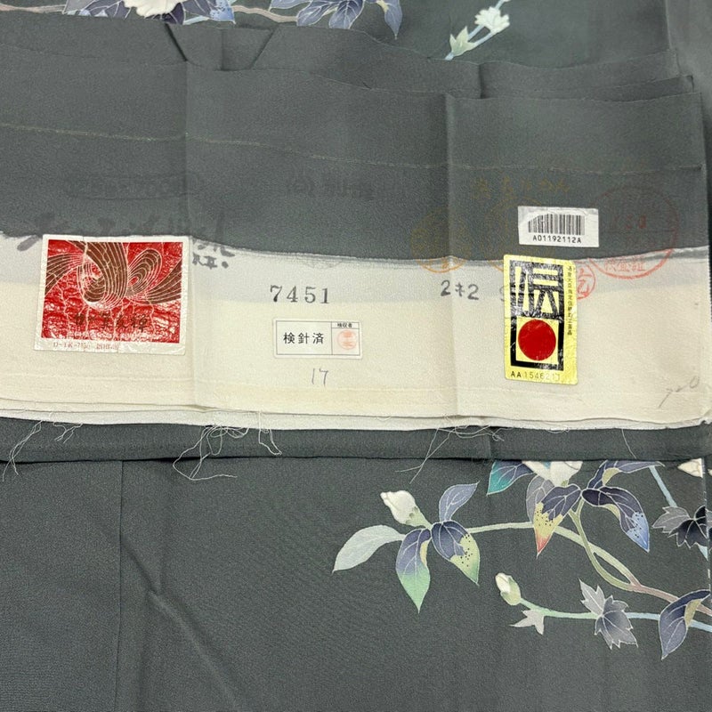 【訪問着】 灰色系 灰緑 名品 C 約150cm~約159cm 裄丈65cm (M)size 袖丈48cm 9990-29990 二万以下