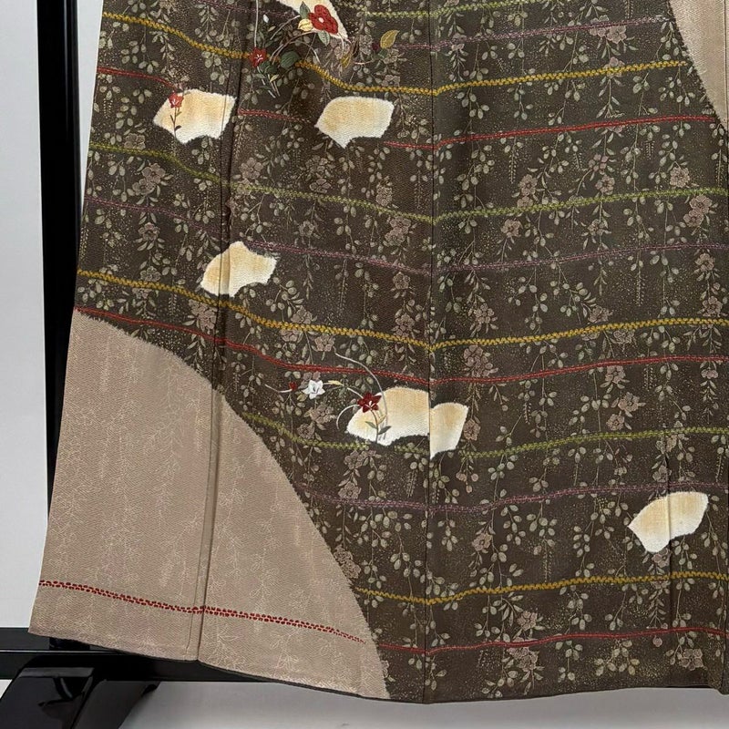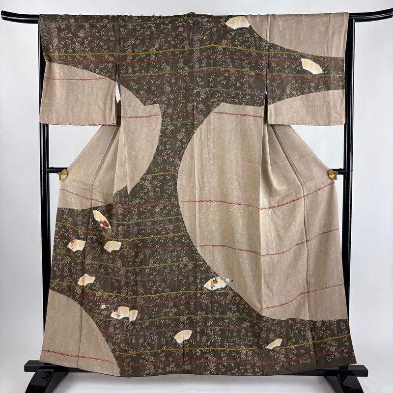 【訪問着】 茶系 薄茶色 秀品 A 約150cm~約159cm 裄丈66cm (M)size 袖丈48cm 9990-29990 美品 二万以下