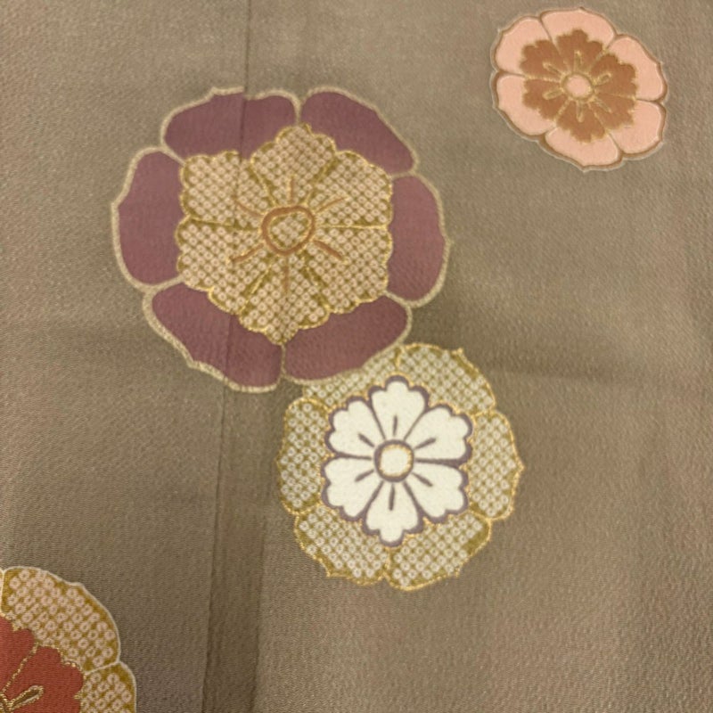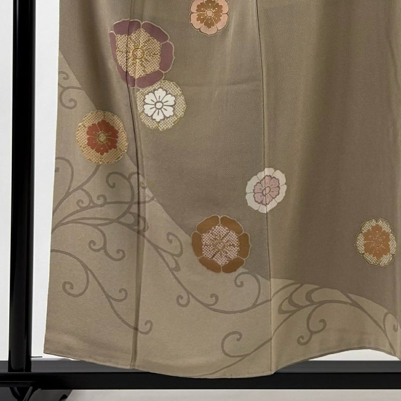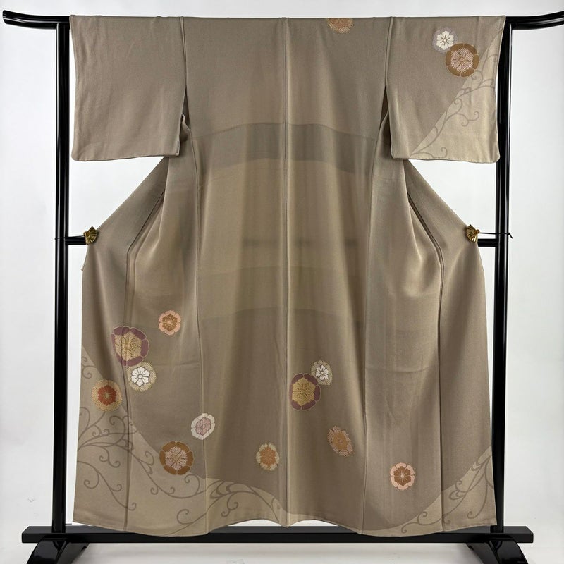 【訪問着】 茶系 薄茶色 秀品 A 約150cm~約159cm 裄丈63cm-64cm (M)size 袖丈46cm以下 9990-29990 美品 二万以下