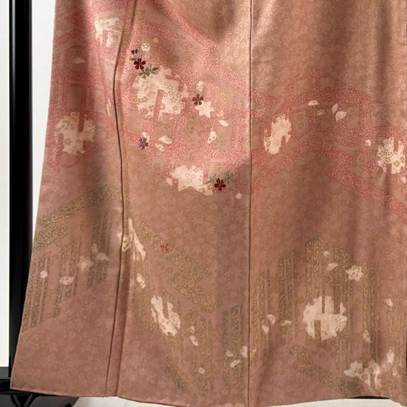 【訪問着】 赤系 ピンクベージュ 秀品 B 約160cm~約169cm 裄丈63cm-64cm (M)size 袖丈49cm 7990-9980 二万以下