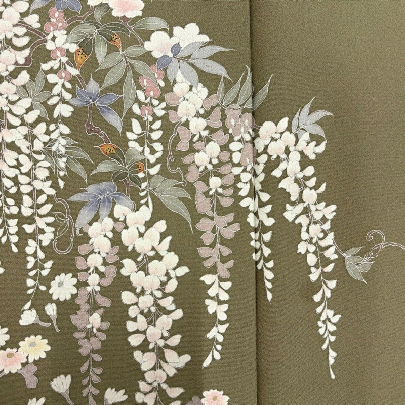 【訪問着】 灰色系 灰緑 秀品 B 約160cm~約169cm 裄丈66cm (M)size 袖丈46cm以下 7990-9980 二万以下