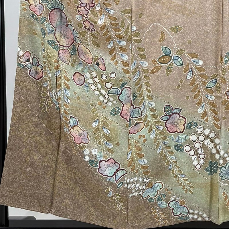 【着物ランク】秀品 【素材】正絹 【身丈】約155cm 【裄丈】約63.5cm 【袖丈】約45cm 【袖幅】約33.5cm 【前幅】約24.5cm 【後幅】約29cm 【サイズ】S 【着物仕立て】袷 【着用時期】10~5月 【状態ランク】ランクB 【着物着用シーン】披露宴、パーティー、お見合い、式典、茶会