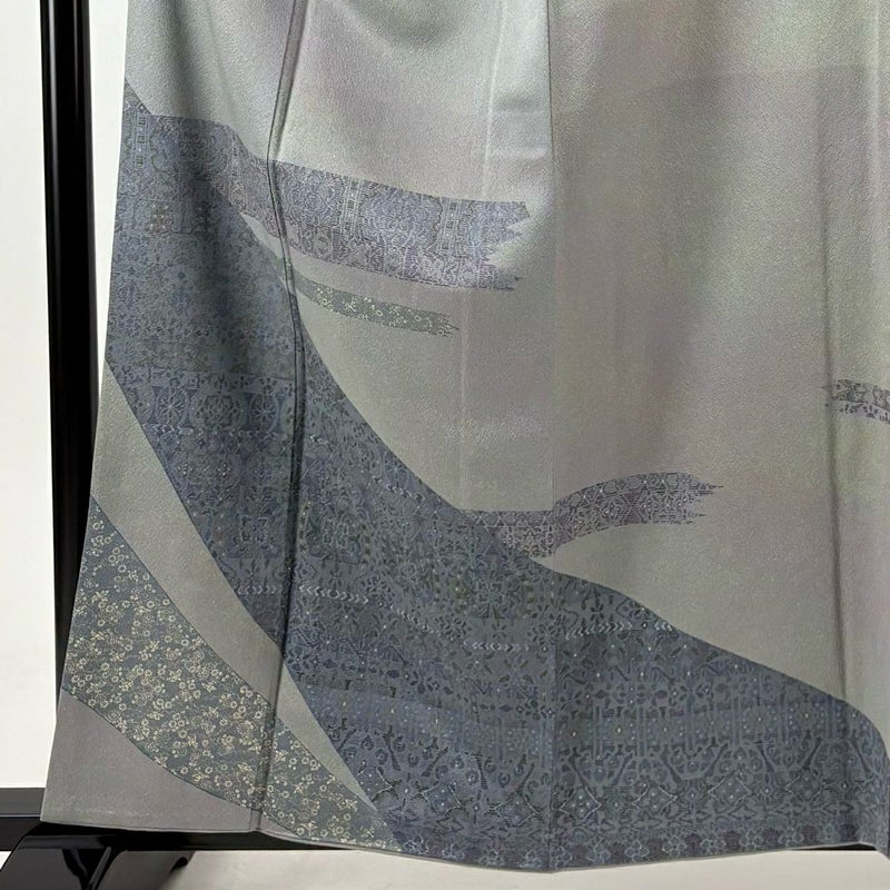 【訪問着】 灰色系 灰緑 秀品 B 約150cm~約159cm 裄丈63cm-64cm (S)size 袖丈47cm 7990-9980 二万以下