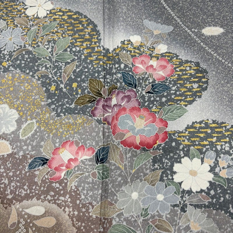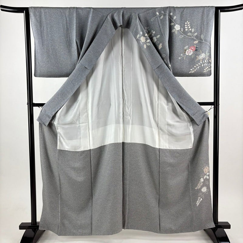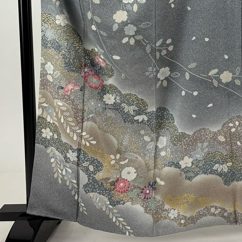 【訪問着】 灰色系 灰色 秀品 A 約160cm~約169cm 裄丈63cm-64cm (M)size 袖丈48cm 9990-29990 美品 二万以下