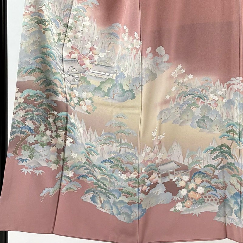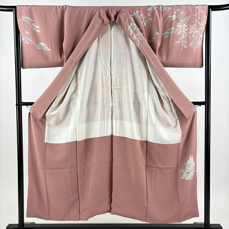 【訪問着】 赤系 ピンクベージュ 秀品 B 約150cm~約159cm 裄丈63cm-64cm (M)size 袖丈46cm以下 7990-9980 二万以下