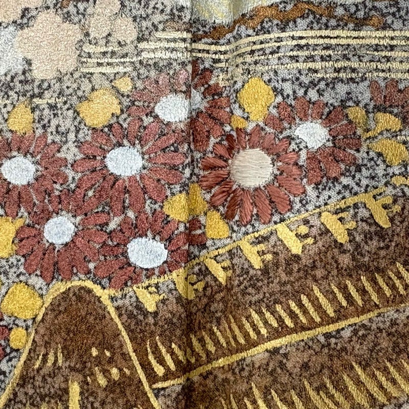 【着物ランク】秀品 【素材】正絹 【身丈】約155.5cm 【裄丈】約63cm 【袖丈】約49cm 【袖幅】約32.5cm 【前幅】約24cm 【後幅】約29cm 【サイズ】S 【着物仕立て】袷 【着用時期】10~5月 【状態ランク】ランクB 【着物着用シーン】披露宴、パーティー、お見合い、式典、茶会