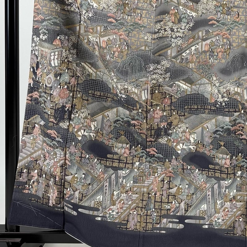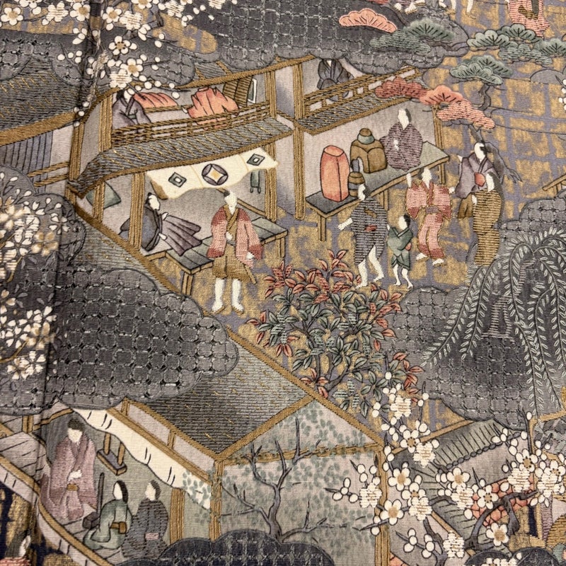 【着物ランク】名品 【素材】正絹 【身丈】約161.5cm 【裄丈】約65.5cm 【袖丈】約49cm 【袖幅】約34.5cm 【前幅】約24cm 【後幅】約29.5cm 【サイズ】M 【着物仕立て】袷 【着用時期】10~5月 【状態ランク】ランクA 【着物着用シーン】披露宴、パーティー、お見合い、式典、茶会