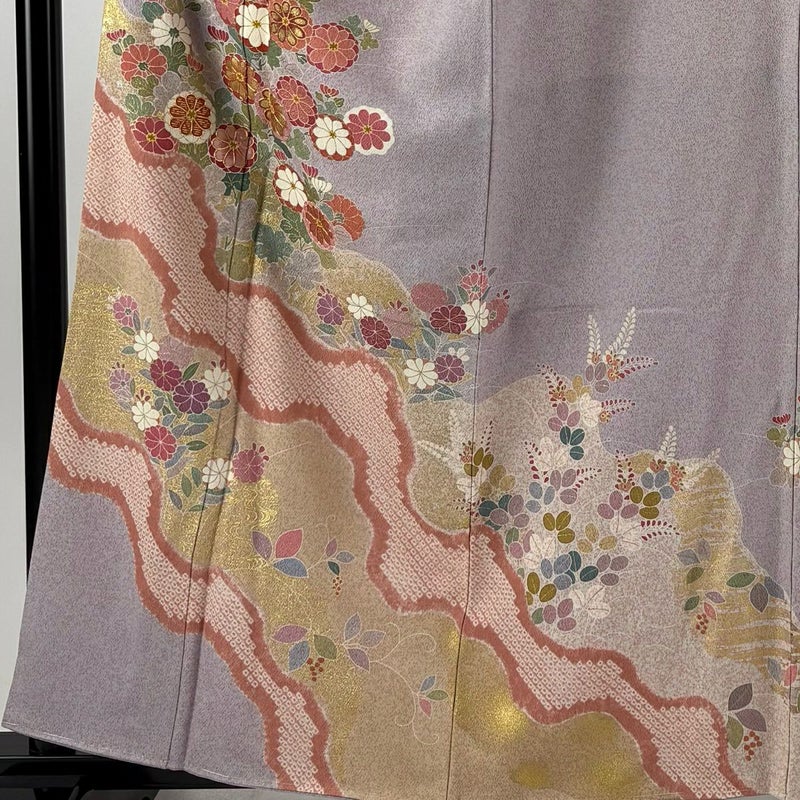 【訪問着】 灰色系 灰紫 逸品 B 約160cm~約169cm 裄丈63cm-64cm (M)size 袖丈49cm 30000- 五万以下